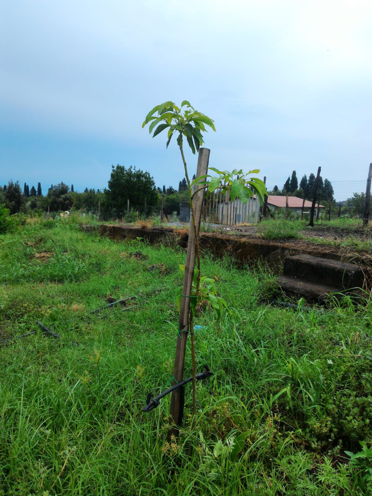 Stato novembre 2017: Le piante sono state comprate presso due vivai per compararne la qualità in vista di futuri acquisti. Le piante sono di tre varietà, Hass, Bacon e Fuerte. Le Bacon e Fuerte sono state impiantate in numero molto inferiore rispetto all'Hass per avere un po’ di avocadi in anticipo e soprattutto come impollinatori.