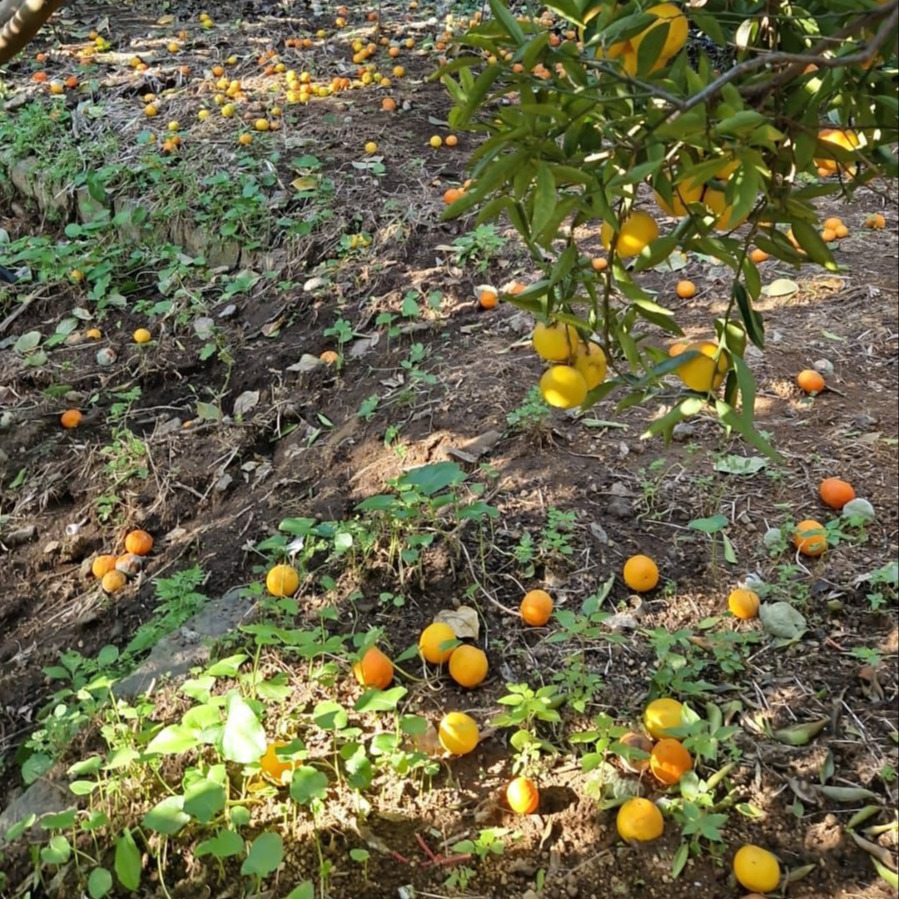 Ci sono anni migliori e peggiori per la cascola. Ad esempio, nel 2025 non abbiamo potuto raccogliere le arance rosse dopo febbraio: dopo un'estate incredibilmente siccitosa, l’anno era iniziato con piogge abbondanti, venti fortissimi, ed elevati sbalzi termici tra giorno e notte.