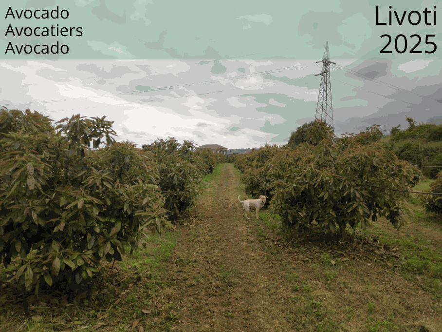 Stato novembre 2017: impiantate 50 piante così suddivise: 40 hass, 5 fuerte e 5 bacon. Sono già dotate di impianto irriguo a pioggia. In azienda erano già presenti altre 60 piante di avocado messe a dimore ad aprile 2016 così suddivise: 50 hass e 10 bacon.