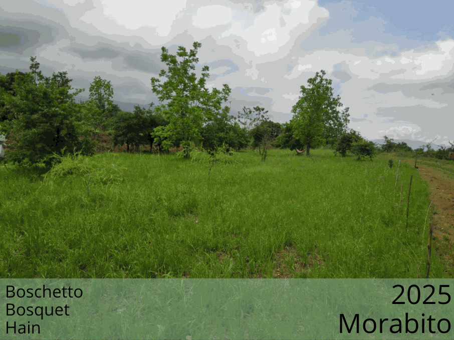 Stato maggio 2023: Quest'anno abbiamo assaggiato i primi frutti, che solo un paio di piante hanno prodotto. L'impianto non è in buone condizioni ed una serie di avvenimenti non hanno contribuito a riprendere una coltivazione che già dai primi anni ha avuto difficoltà. Il mio impegno è quello di riprendere l'impianto già da quest'anno, sostituire alcune piante che non ce l'hanno fatta e trovare insieme al Consorzio un modo per recuperare parzialmente il Nostro frutteto.