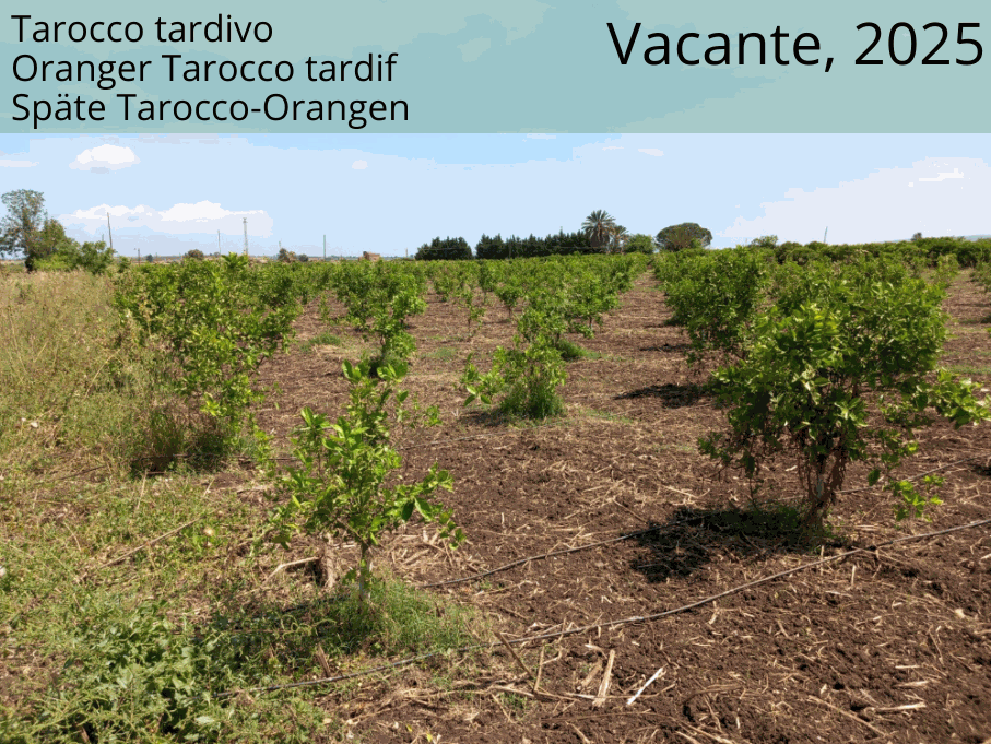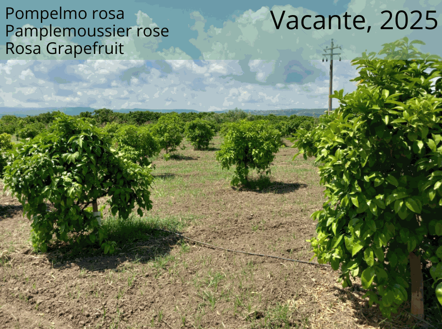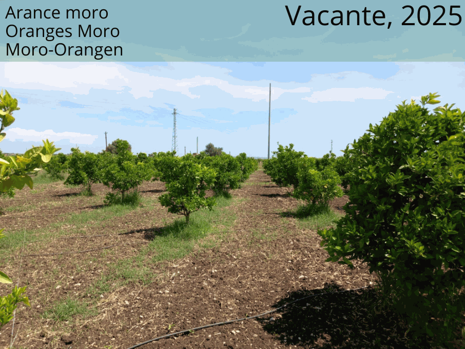 Stato giugno 2025: Nella campagna 2024-2025, in media ben più calda - e siccitosa - della precedente, ma fortunatamente senza picchi estremi, la produzione è stata buona. Quest'anno tutte le aziende visitate presentano una allegagione quasi nulla, salvo pochissime piante distribuite a macchia di leopardo che presentano una discreta allegagione.