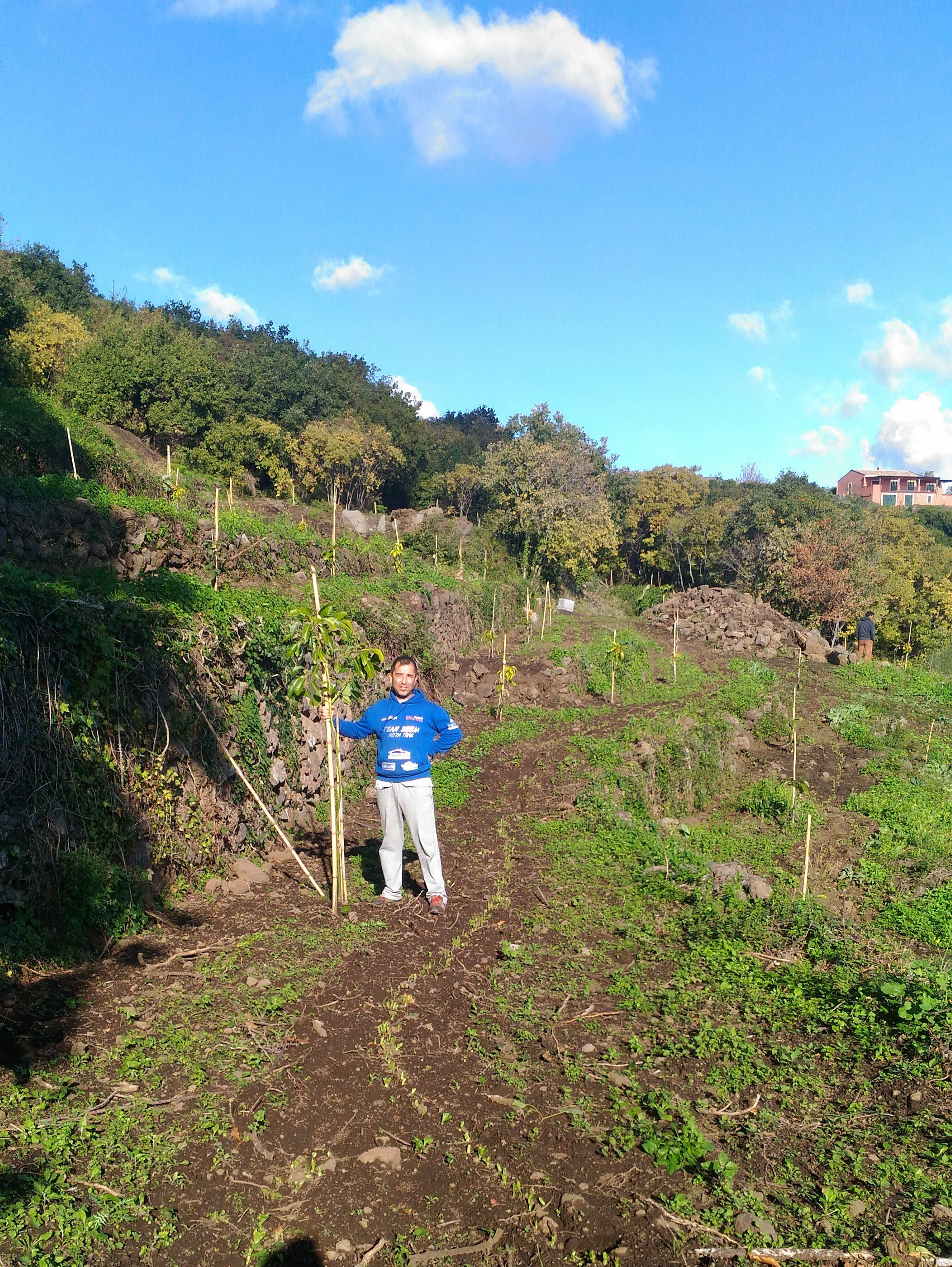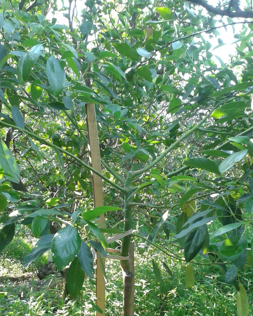 Stato aprile 2019: L'impianto è in buono stato, le condizioni microclimatiche favorevoli e le cure di Mario hanno permesso alle più grandi (poco più di due anni dalla messa a dimora) di avere già i primi frutti. Si è osservato come alcune foglie mostrino delle macchie giallastre sulla pagina inferiore. Non abbiamo ancora capito a cosa siano attribuibili, ma le piante reagiscono eliminando le foglie colpite senza compromettere la salute generale dell'alberello.